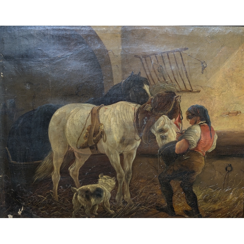 Tableau "A l'écurie" signé KÜBLER L