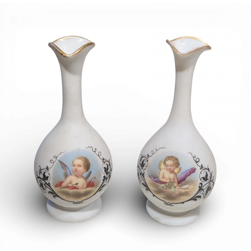 Paire de vases en opaline Anges
